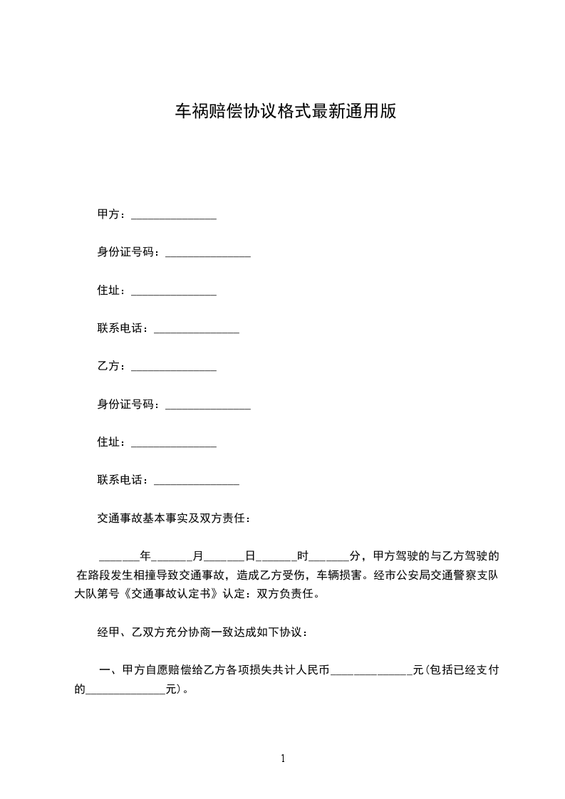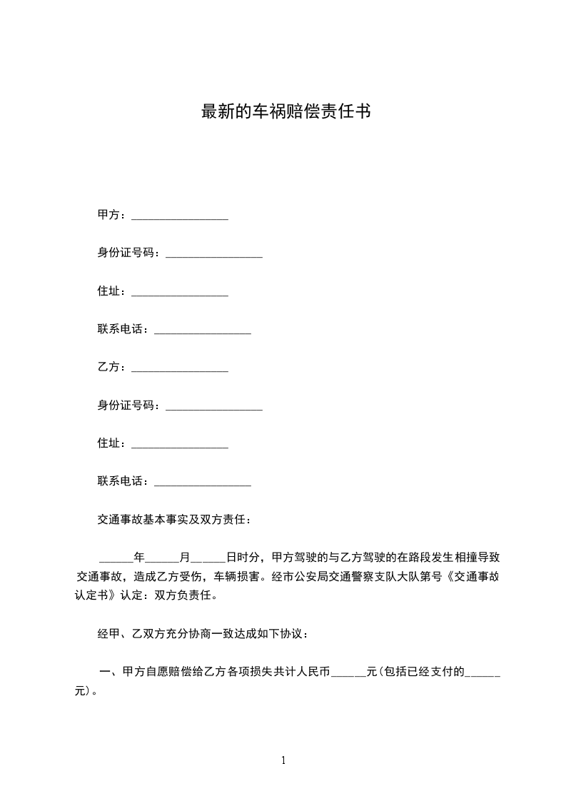 一、甲方自愿赔偿给乙方各项损失共计人民币______________元(包括已经支付的______________元)。