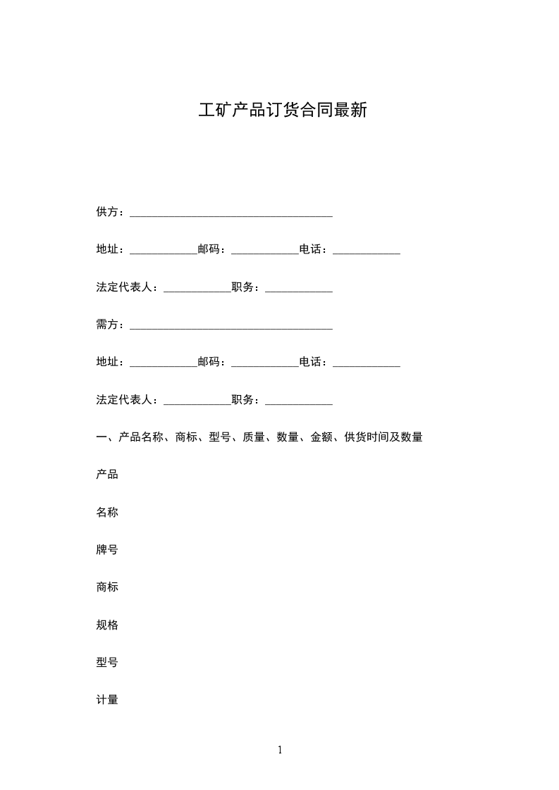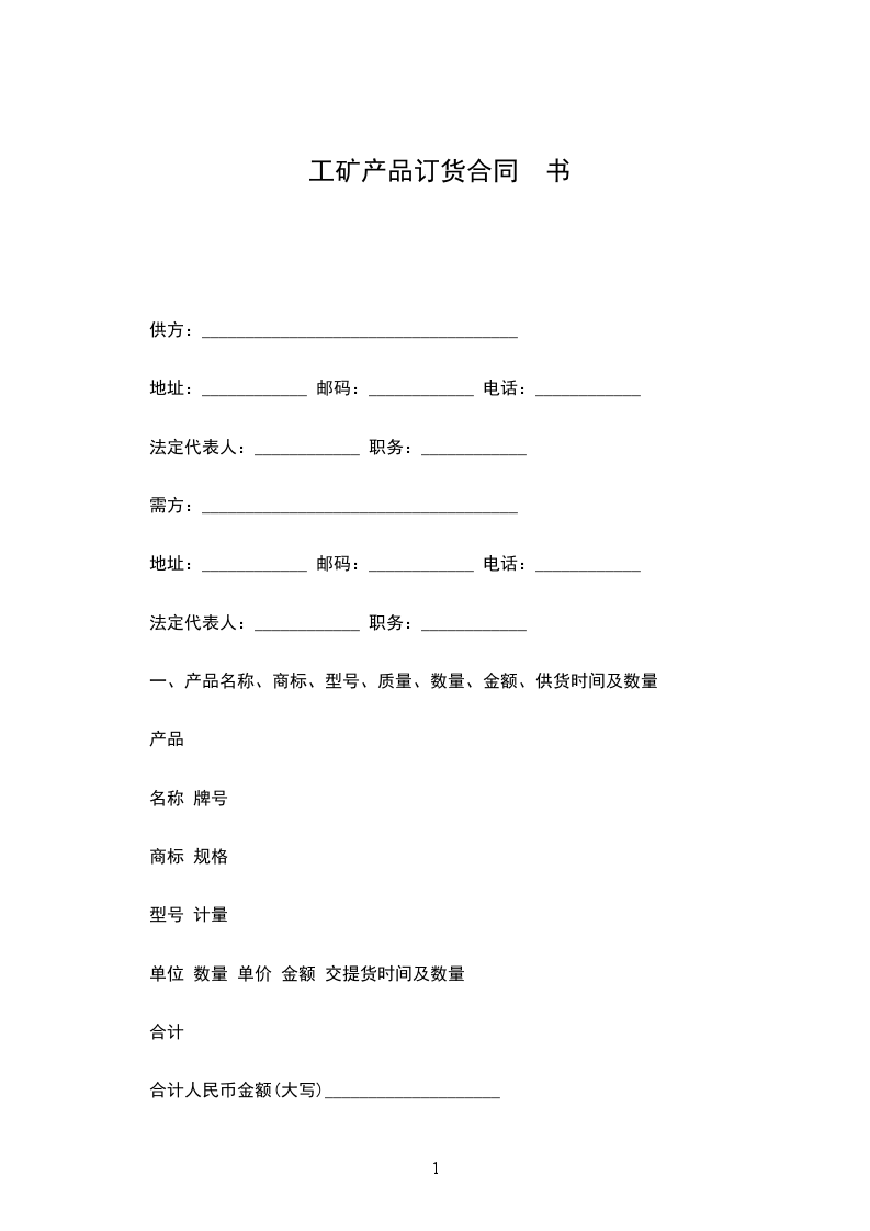 一、产品名称、商标、型号、质量、数量、金额、供货时间及数量