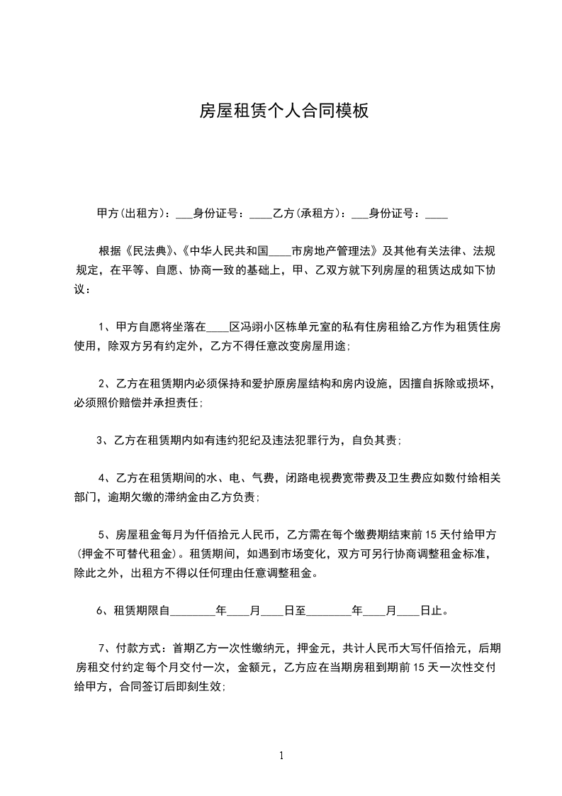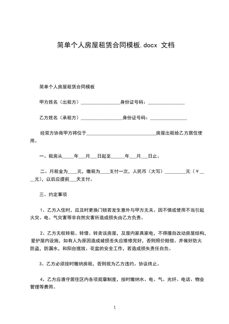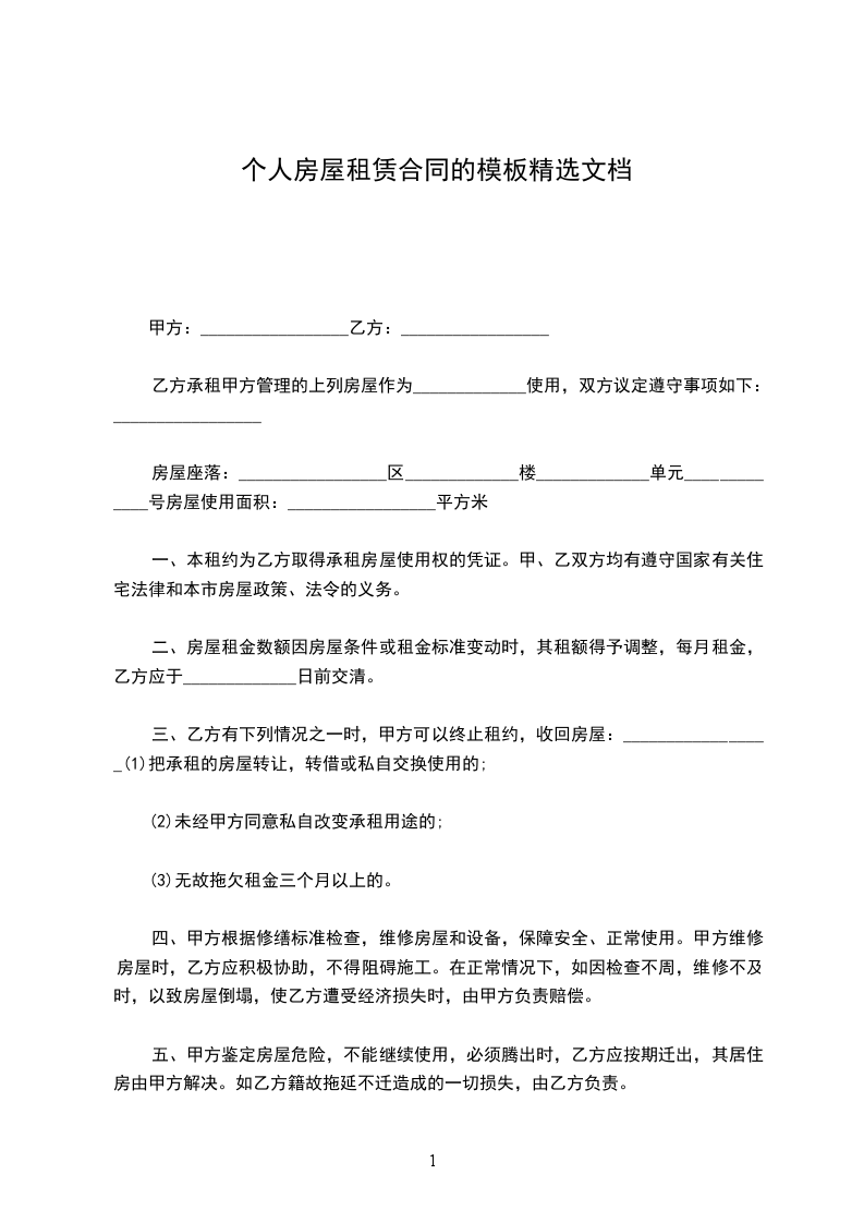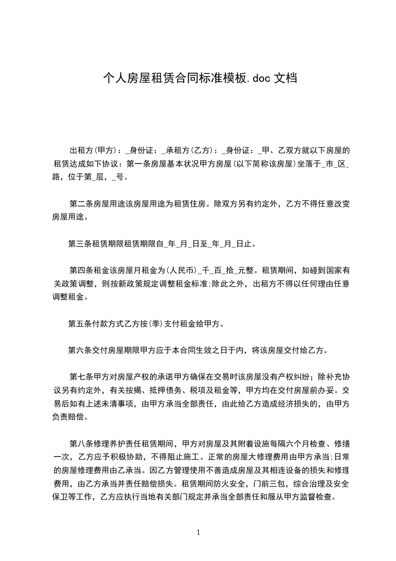 第一条;租赁房屋