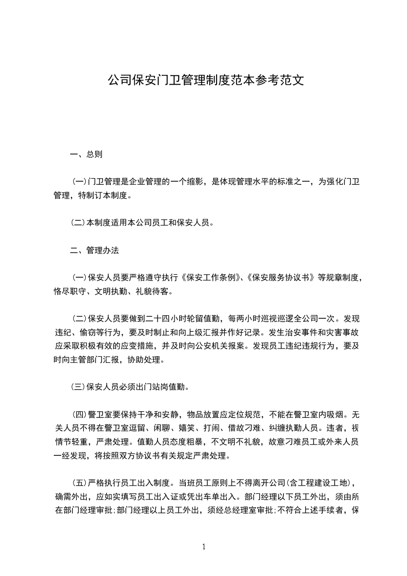 (一)门卫管理是企业管理的一个缩影,是体现管理水平的标准之一,为强化门卫管理,特制订本制度。