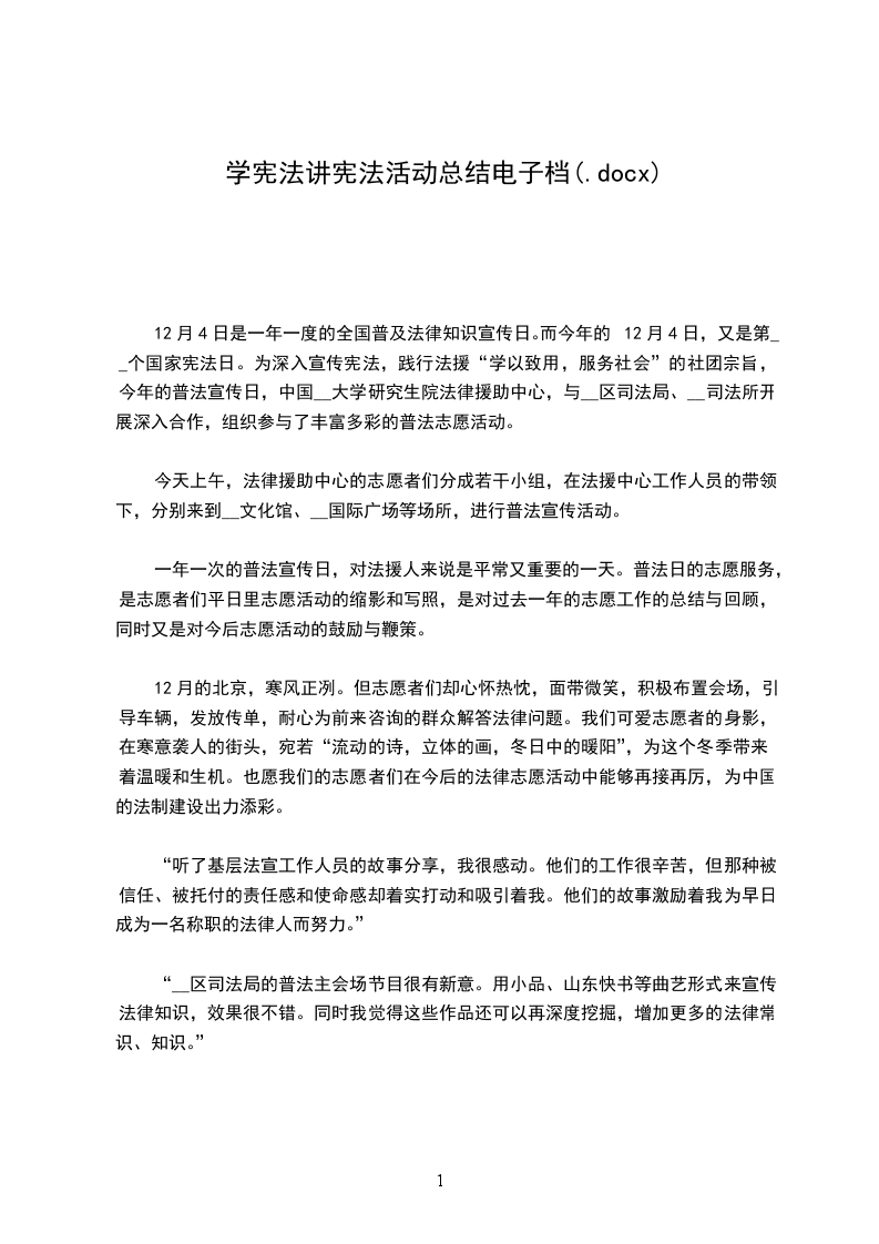组织国家宪法日“宪法晨读”活动。全市将在20__年12月,开展第_个国家宪法日暨教育系统宪法学习周活动。12月4日当天,组织全市中小学生“宪法晨读”活动。