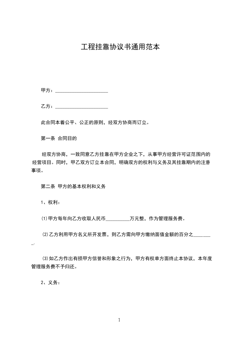 第一条 合同目的