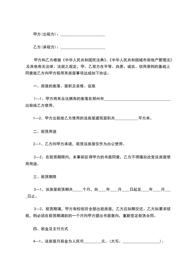 1—1、甲方将其合法拥有的座落在郑州市__________________________________出租给乙方使用。