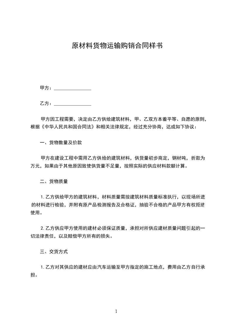 1.乙方对其供应的建材应由汽车运输至甲方指定的施工地点,费用由乙方自行承担。