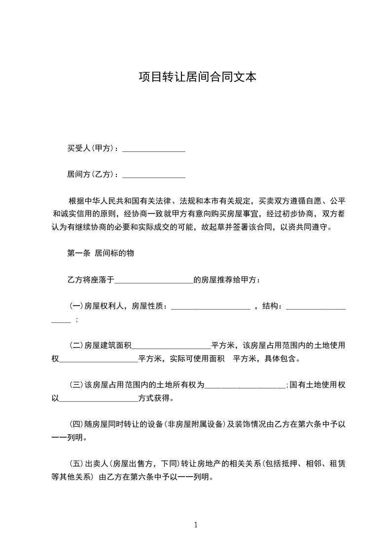 第一条 居间标的物