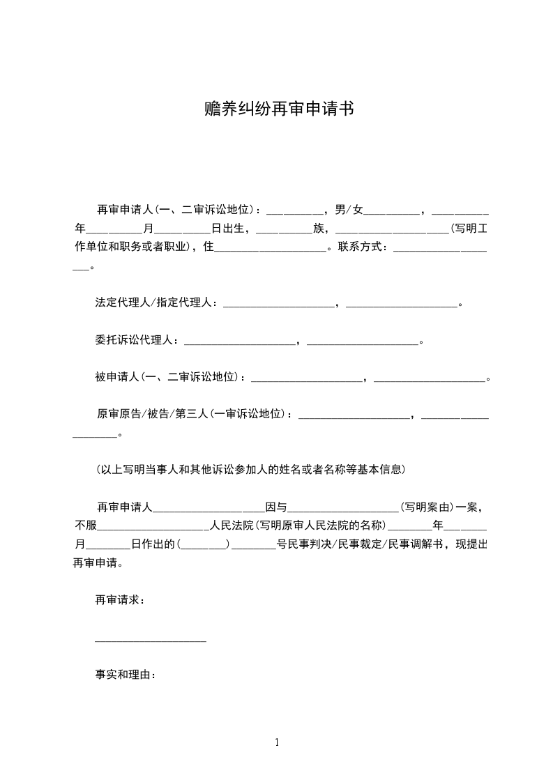 再审申请人(一、二审诉讼地位):__________,男/女__________,__________年__________月__________日出生,__________族,____________________(写明工作单位和职务或者职业),住____________________。联系方式:____________________。