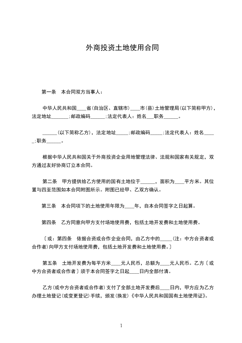 第一条 根据中华人民共和国关于外商投资企业用地管理法律、法规和国家有关规定,双方通过友好协商订立本合同,共同遵守。