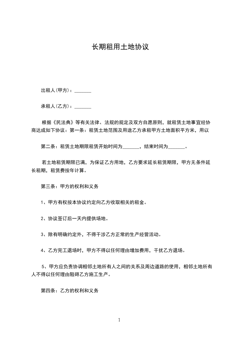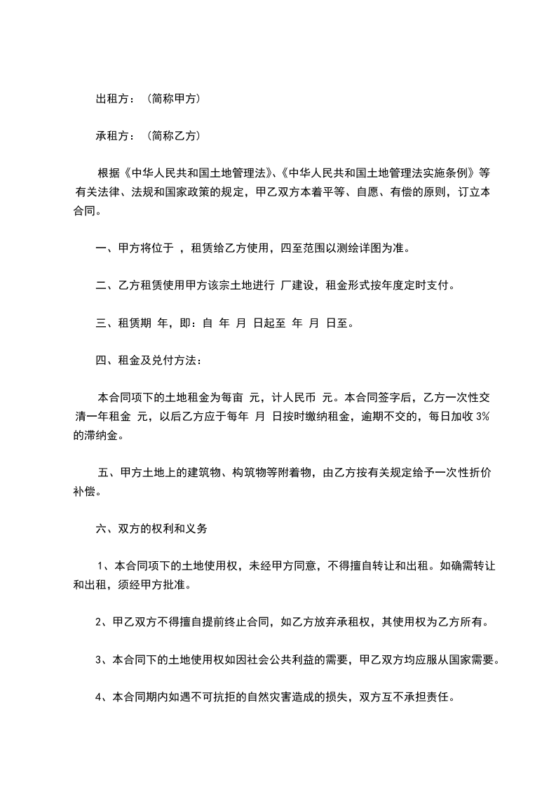 1、乙方要依法保护利用土地,不得给土地造成永久性的损害。