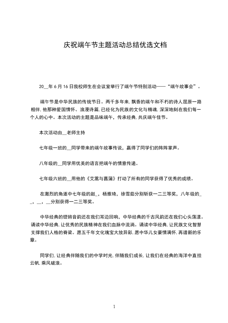 20__年6月16日我校师生在会议室举行了端午节特别活动——“端午故事会”。
