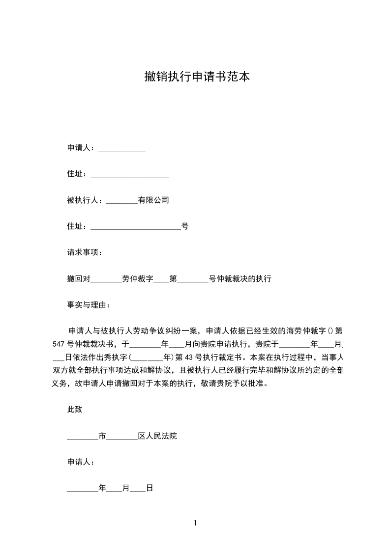 申请人与被执行人劳动争议纠纷一案,申请人依据已经生效的海劳仲裁字()第547号仲裁裁决书,于________年____月向贵院申请执行,贵院于________年____月____日依法作出秀执字(________年)第43号执行裁定书。本案在执行过程中,当事人双方就全部执行事项达成和解协议,且被执行人已经履行完毕和解协议所约定的全部义务,故申请人申请撤回对于本案的执行,敬请贵院予以批准。