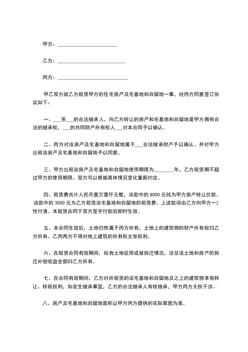 1.在该宅基地上的房屋由乙方自行出资建造,房产归乙方所有。
