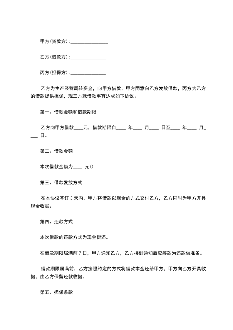 第二十二条本合同一式____份,借款人、贷款人、出质人各执一份。