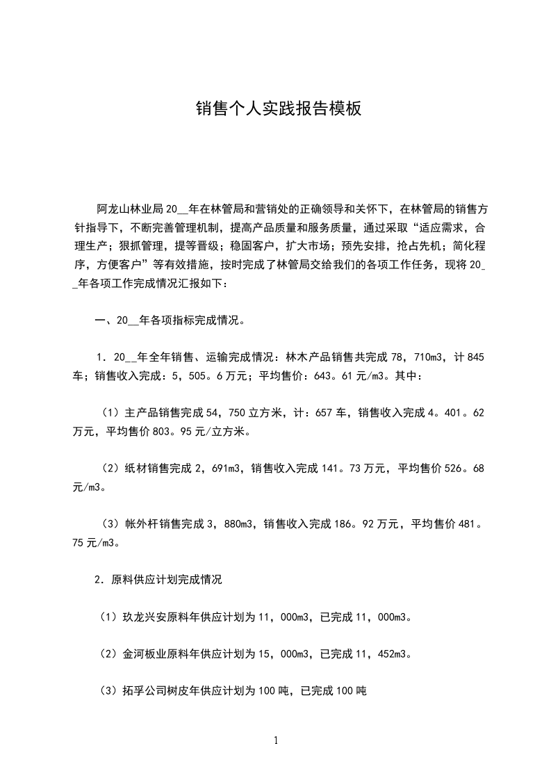阿龙山林业局20__年在林管局和营销处的正确领导和关怀下,在林管局的销售方针指导下,不断完善管理机制,提高产品质量和服务质量,通过采取“适应需求,合理生产;狠抓管理,提等晋级;稳固客户,扩大市场;预先安排,抢占先机;简化程序,方便客户”等有效措施,按时完成了林管局交给我们的各项工作任务,现将20__年各项工作完成情况汇报如下: