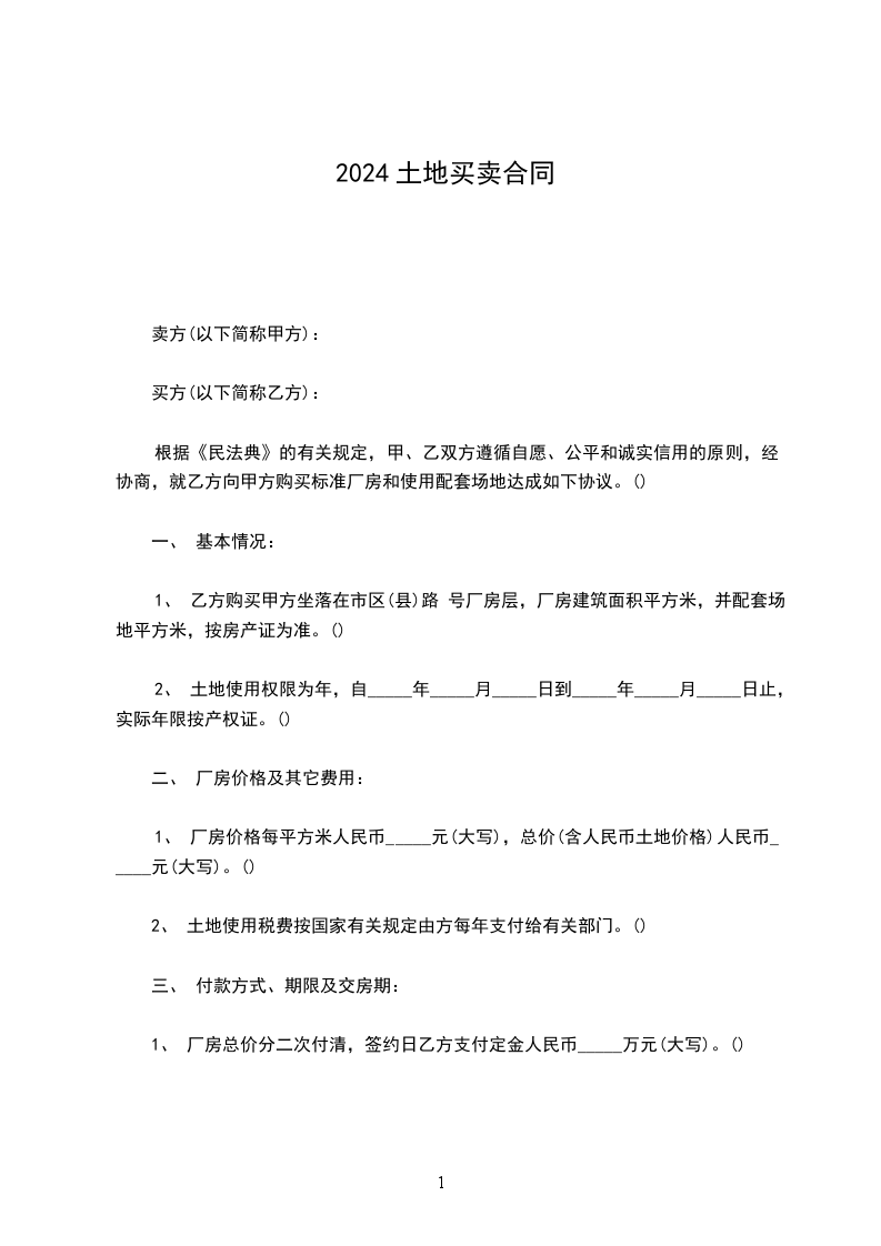 1、 厂房价格每平方米人民币______________________元(大写),总价(含人民币土地价格)人民币_______________________________元(大写)。()