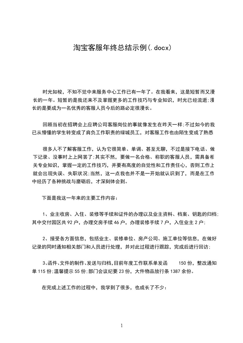 入职一年以来,在领导和同事的帮助下,本人对淘宝客服工作职责及内容有了较好了解和基本掌握,并已开始正式上岗。现就工作学习心得,工作的内容要点及工作中出现的问题作一个阶段性的总结,以为日子不断对自己工作进行完善做参考和准备。