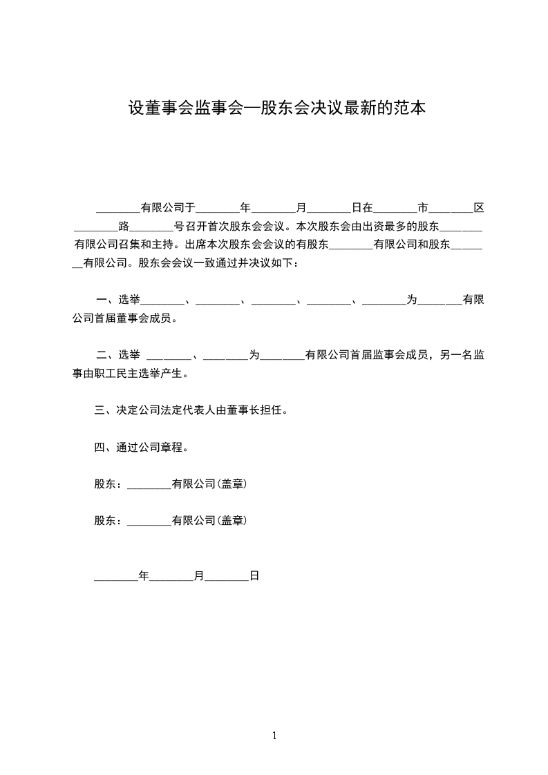 ________有限公司于________年________月________日在________市________区________路________号召开首次股东会会议。本次股东会由出资最多的股东________有限公司召集和主持。出席本次股东会会议的有股东________有限公司和股东________有限公司。股东会会议一致通过并决议如下: