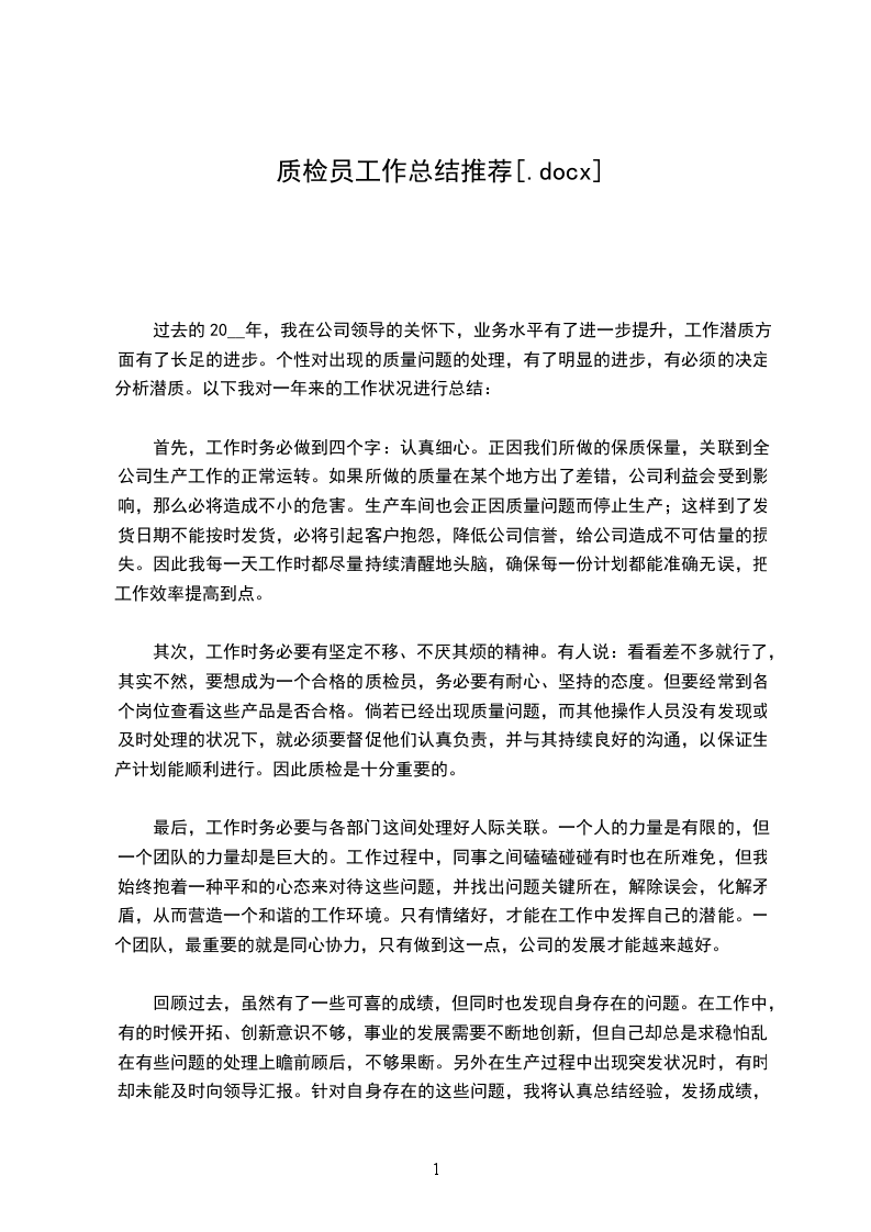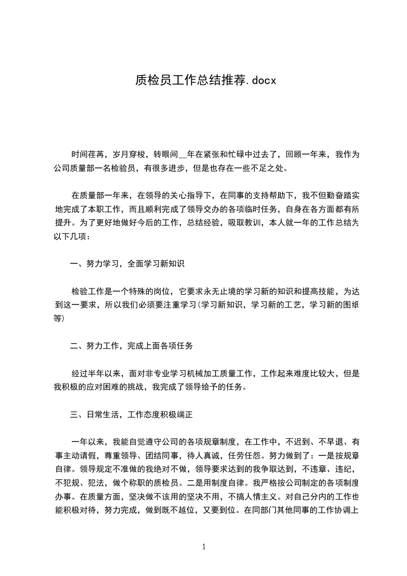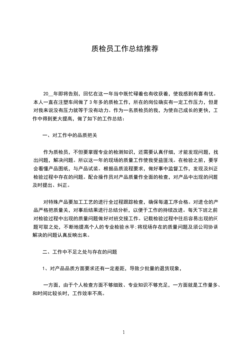 来年的质量工作将更加任重道远,除了加强日常的质量检查外,对10年工程质量上出现的质量问题,例如钢筋间距、钢筋混凝土保护层、模板拼接及支撑加固、混凝土浇注振捣等问题做好记录、反馈及复检,并且在10年的基础上进一步完善项目部质量管理体系,以及组织机构人员、质量管理管理规定、奖罚条例等,通过完善制度来约束人的行为,科学地进行项目管理。作为我将担负起质检员的职责,加强现场的质量管理,并且在工作中不断去总结以前的经验和教训,培养自己工作中的预见性,并应用至工程中。建筑职业不同于其他行业,它需要不断在现场检查、监督,随时发现问题,解决问题,从工程的实干中不断丰富自己所学才能,使自己的现场综合处理能力得到锻炼和提高。进一步发扬优点,改进不足,全力做好本职工作。要保持良好的精神状态,吃苦耐劳、严谨细致、积极进取。