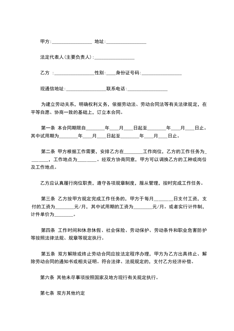 乙方 :_________________性别:____身份证号码:_________________