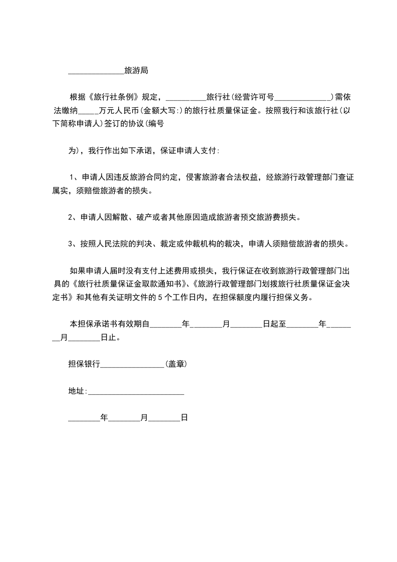 如果申请人届时没有支付上述费用或损失,我行保证在收到旅游行政管理部门出具的《旅行社质量保证金取款通知书》、《旅游行政管理部门划拨旅行社质量保证金决定书》和其他有关证明文件的5个工作日内,在担保额度内履行担保义务。