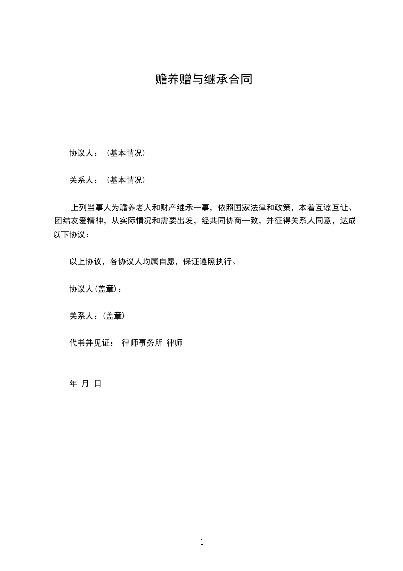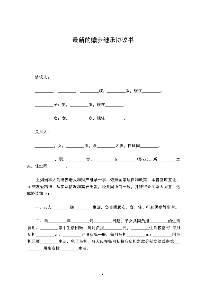 上列当事人为赡养老人和财产继承一事,依照国家法律和政策,本着互谅互让、团结友爱精神,从实际情况和需要出发,经共同协商一致,并征得众关系人同意,达成协议如下: