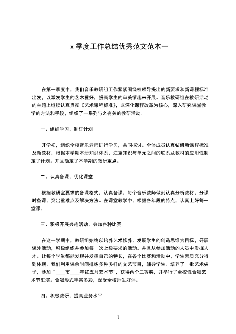 在第一季度中,我们音乐教研组工作紧紧围绕校领导提出的新要求和新课程标准出发,以激发学生的艺术爱好,提高学生的审美情趣来开展。音乐教研组在教研活动的主题上继续认真贯彻《艺术课程标准》,以深化课程改革为核心,深入研究课堂教学的方法和手段,组织了一系列与之有关的教研活动。
