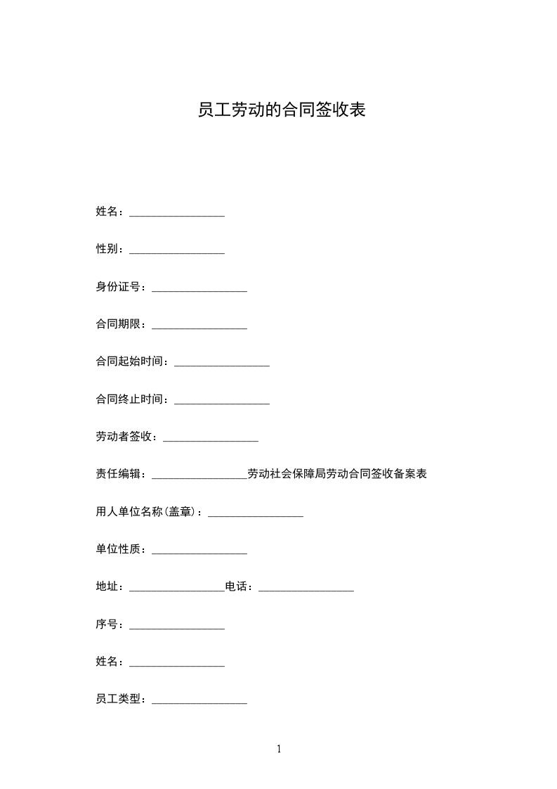 说明:1、此表是用人单位与员工签订劳动合同的凭证之一,劳动合同签收表,合同范本《劳动合同签收表》