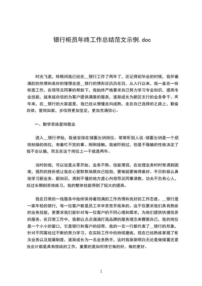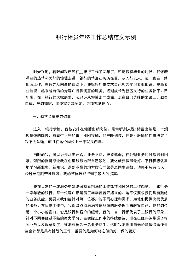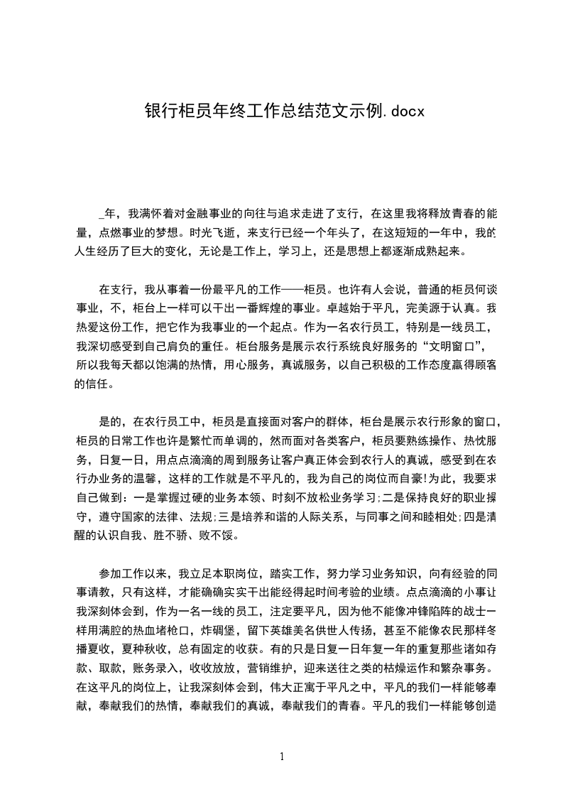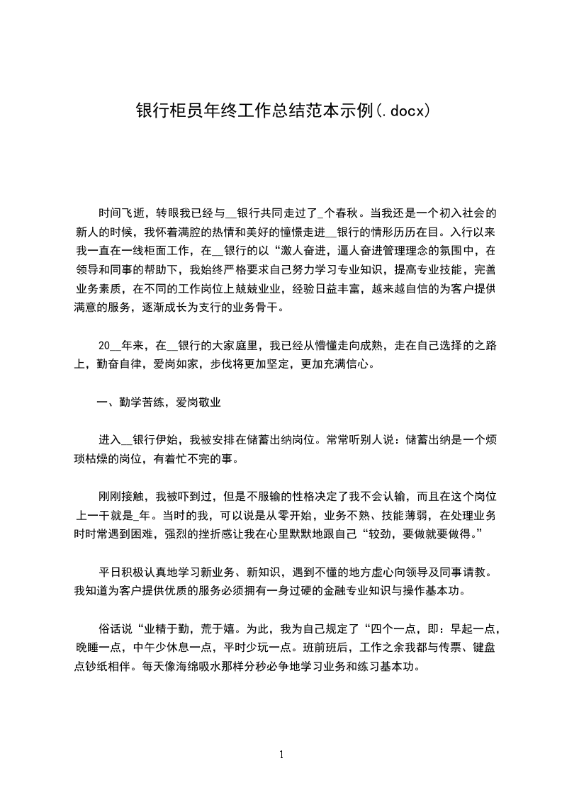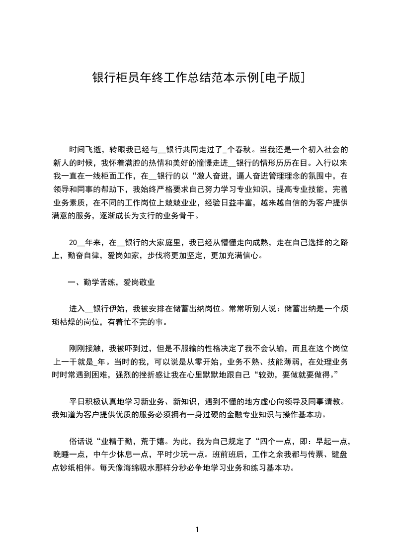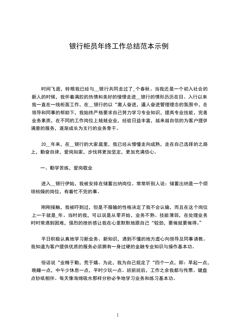 20__年来,在__银行的大家庭里,我已经从懵懂走向成熟,走在自己选择的之路上,勤奋自律,爱岗如家,步伐将更加坚定,更加充满信心。