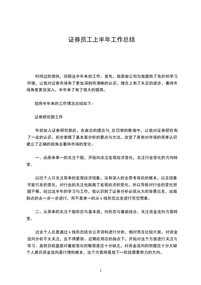 时间过的很快,回顾这半年来的工作。首先,我感谢公司为我提供了良好的学习环境,让我对证券市场有了更加深刻而清晰的认识。理念上有了长足的进步,看待市场角度更加深入,半年来了有了很大的提高。