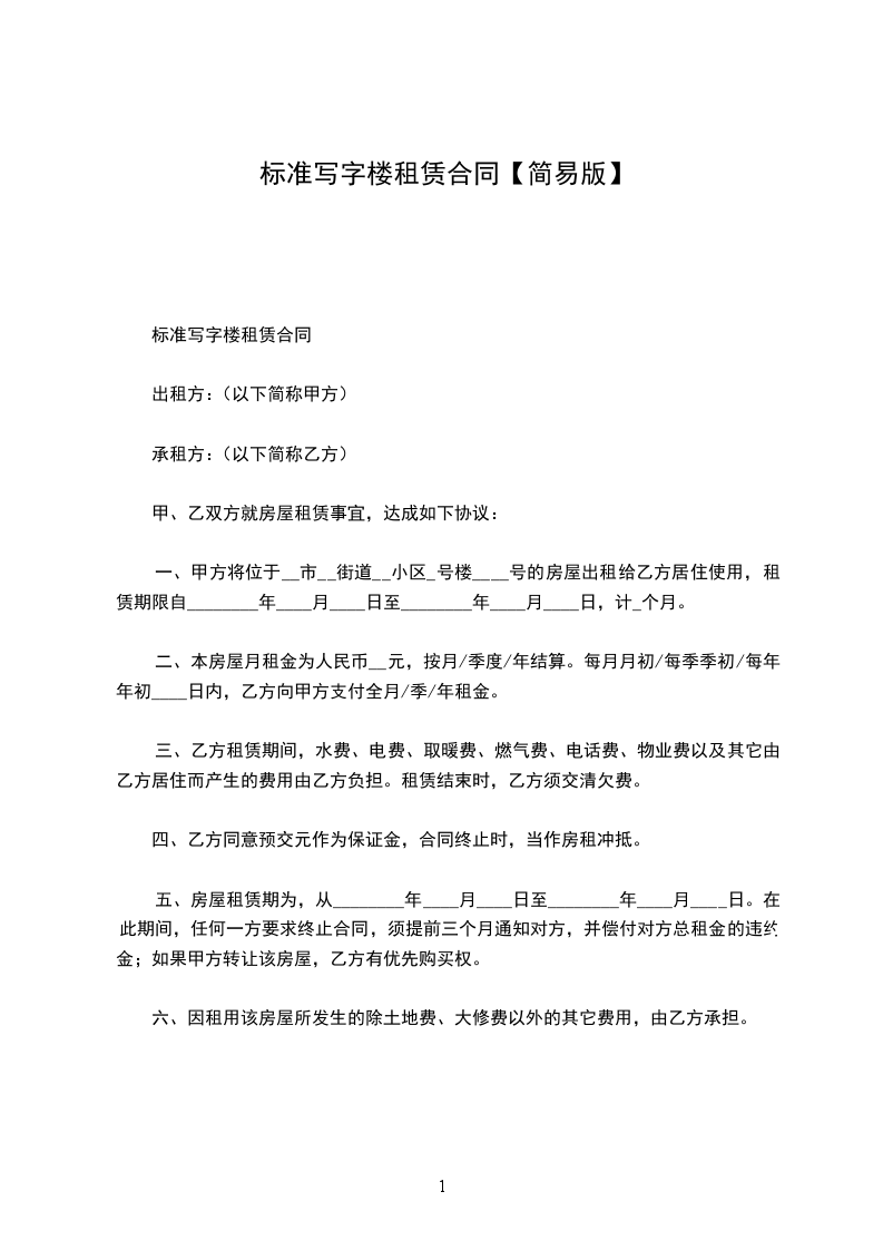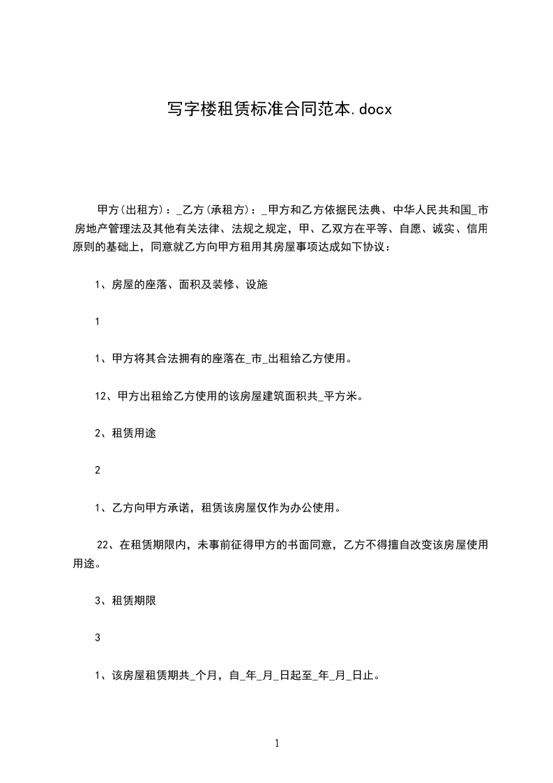 第一条、本合同所指标的为______市______区______号楼______门______房间