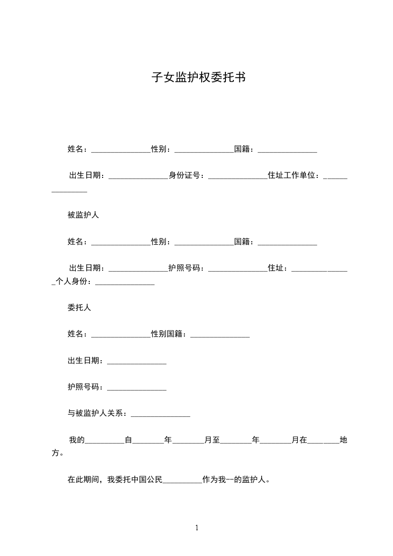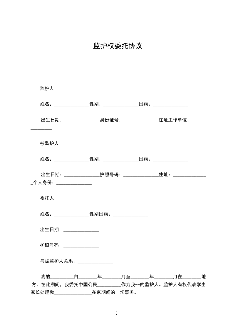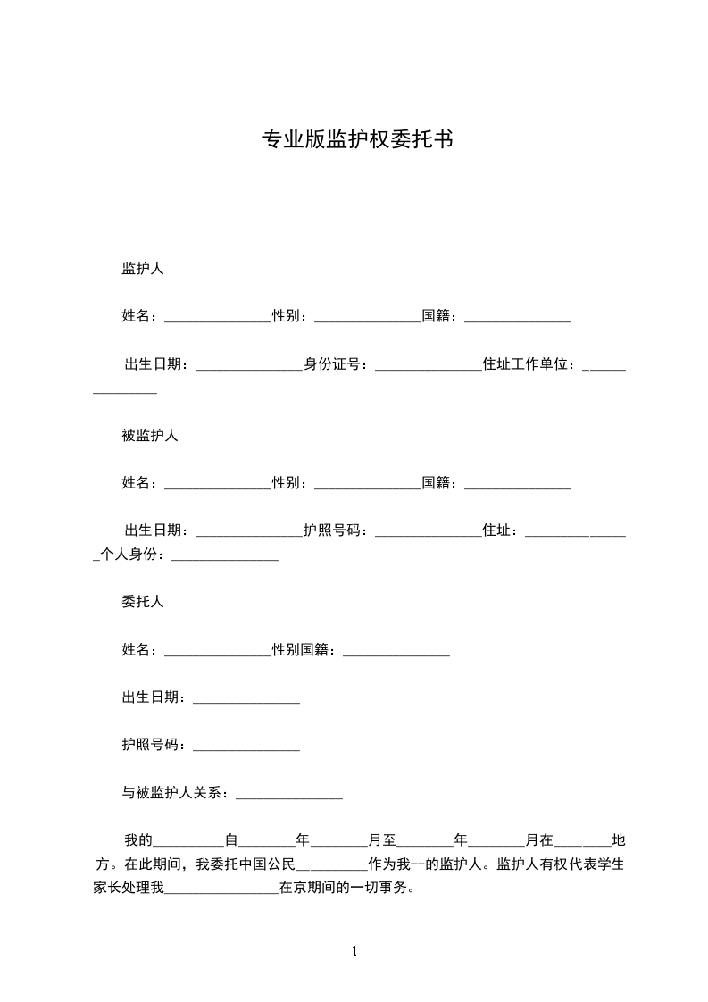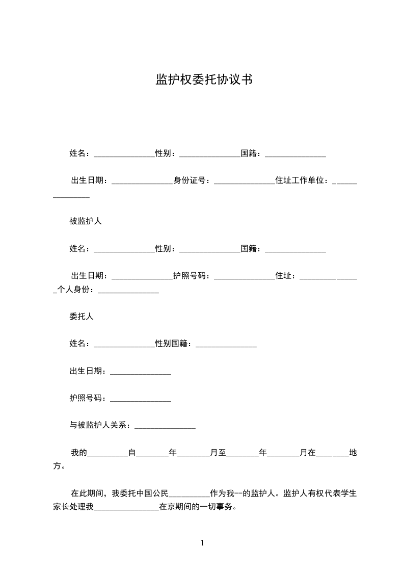 我的__________自________年________月至________年________月在________地方。在此期间,我委托中国公民__________作为我--的监护人。监护人有权代表学生家长处理我________________在京期间的一切事务。