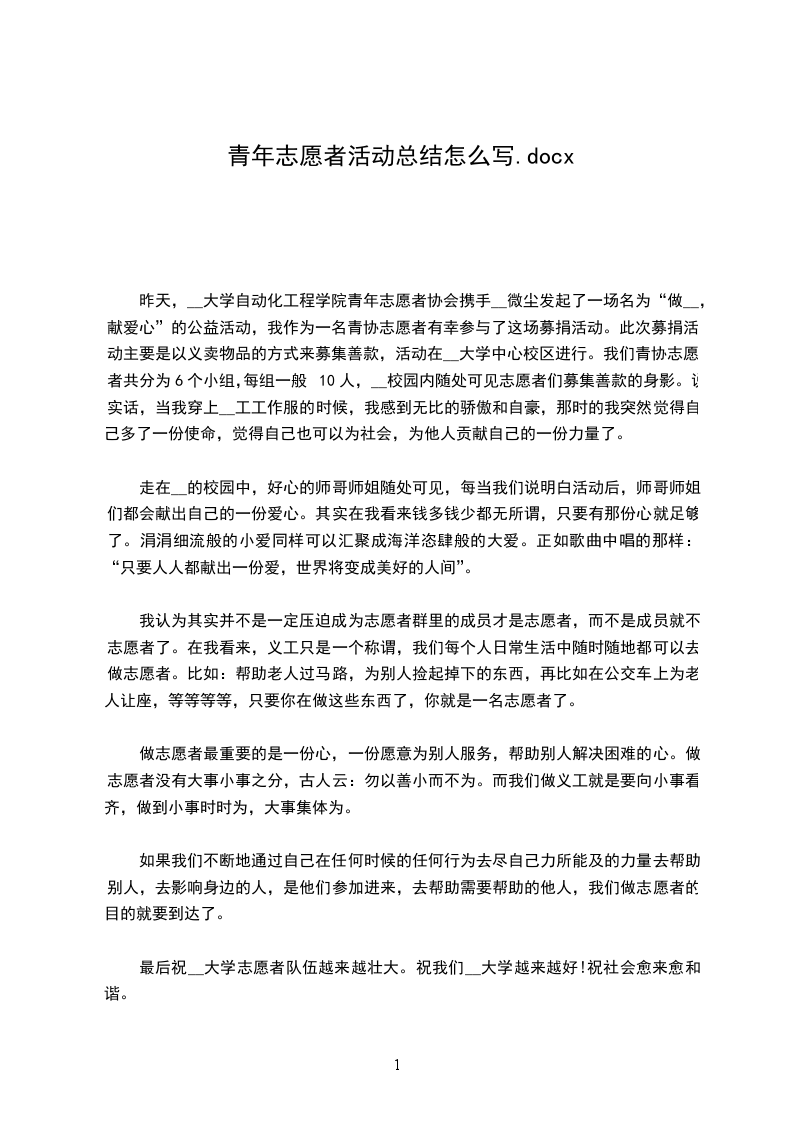 最后祝__大学志愿者队伍越来越壮大。祝我们__大学越来越好!祝社会愈来愈和谐。