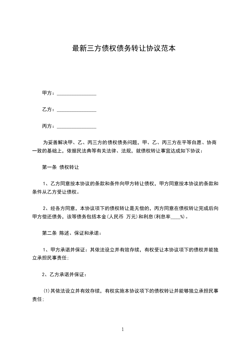 1.2经各方同意,本协议项下的债权转让是无偿的,丙方同意在债权转让完成后向甲方偿还债务,该等债务包括本金(人民币________万元)和利息(利息率____%)。