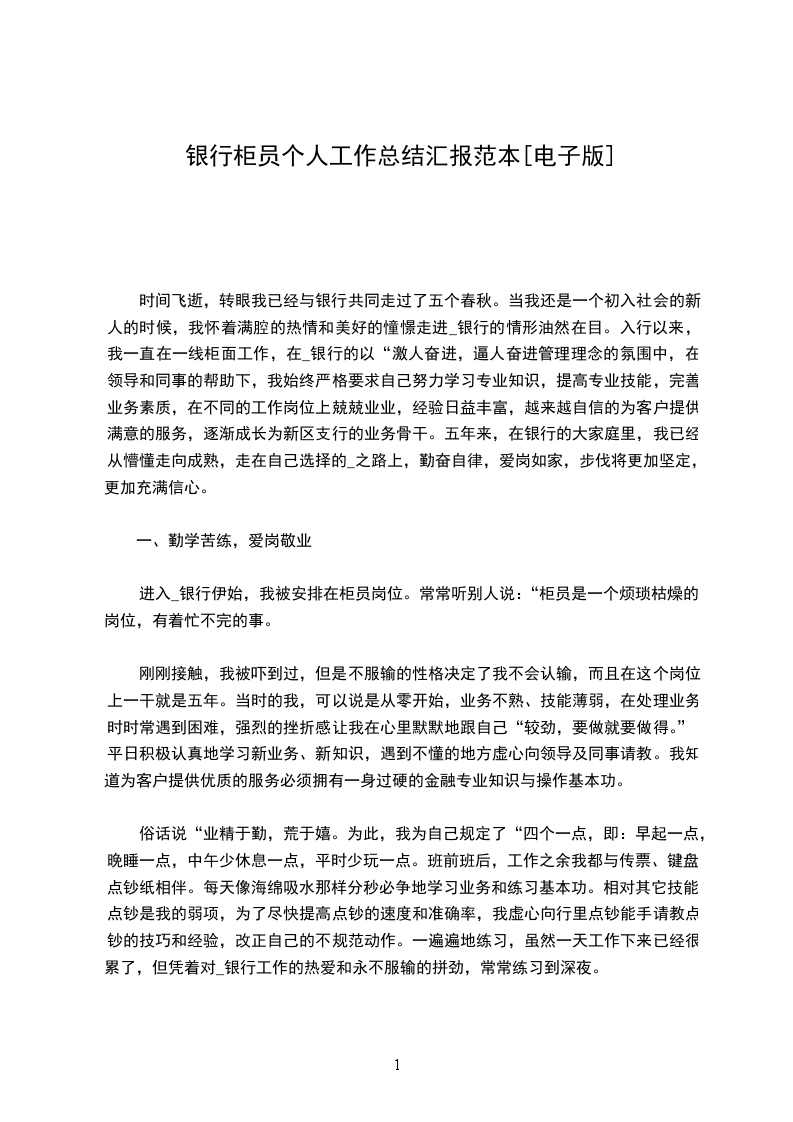 时间飞逝,转眼我已经与银行共同走过了五个春秋。当我还是一个初入社会的新人的时候,我怀着满腔的热情和美好的憧憬走进_银行的情形油然在目。入行以来,我一直在一线柜面工作,在_银行的以“激人奋进,逼人奋进管理理念的氛围中,在领导和同事的帮助下,我始终严格要求自己努力学习专业知识,提高专业技能,完善业务素质,在不同的工作岗位上兢兢业业,经验日益丰富,越来越自信的为客户提供满意的服务,逐渐成长为新区支行的业务骨干。五年来,在银行的大家庭里,我已经从懵懂走向成熟,走在自己选择的_之路上,勤奋自律,爱岗如家,步伐将更加坚定,更加充满信心。