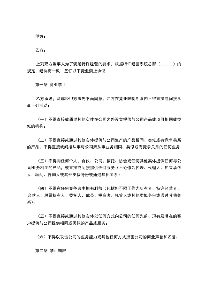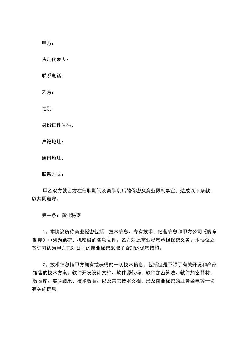 2、在甲方任职一年以上的,保密和竞业禁止期限为三年。