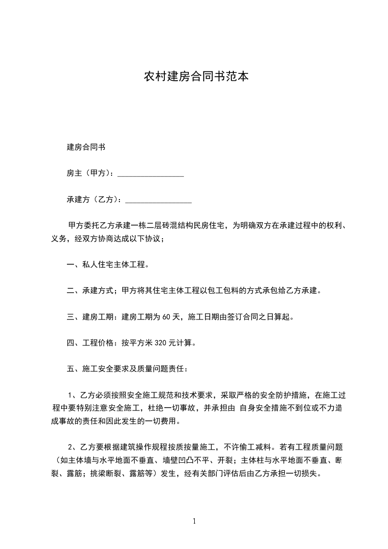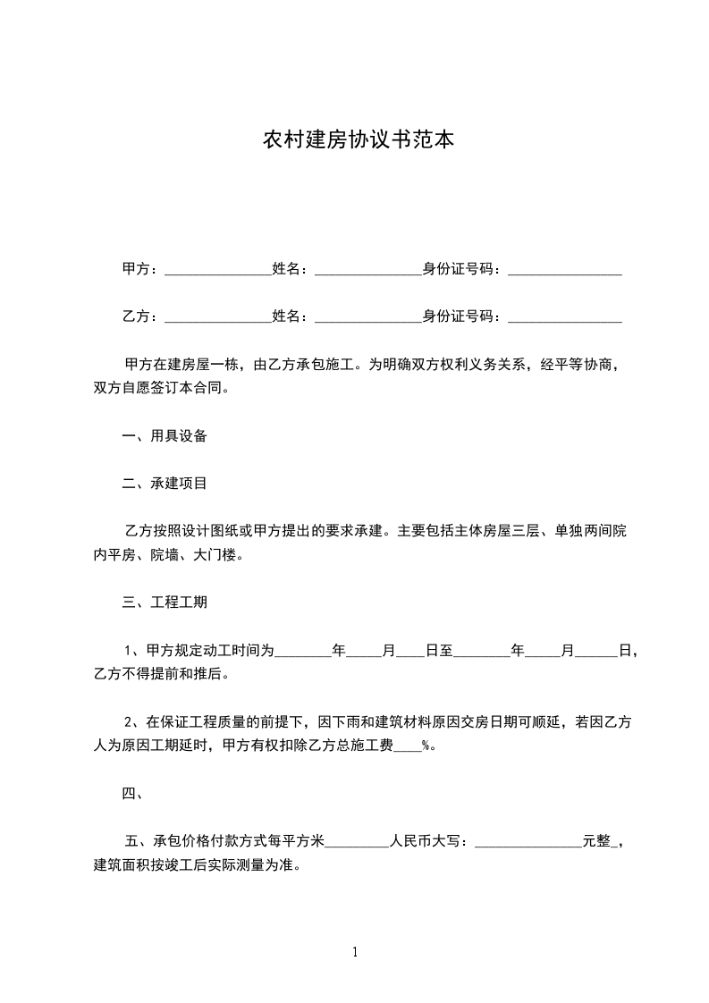 五、承包价格付款方式每平方米_________人民币大写:_______________元整_,建筑面积按竣工后实际测量为准。
