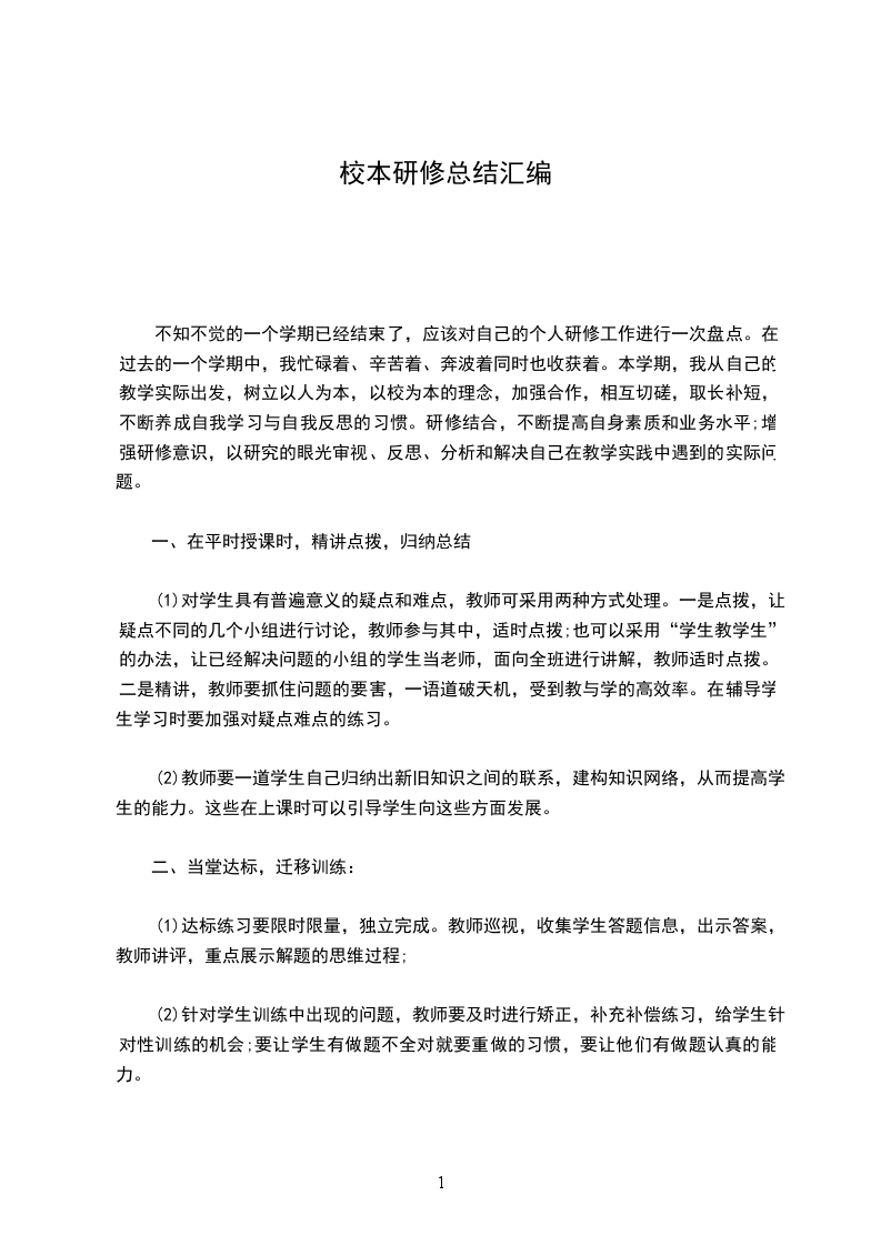 不知不觉的一个学期已经结束了,应该对自己的个人研修工作进行一次盘点。在过去的一个学期中,我忙碌着、辛苦着、奔波着同时也收获着。本学期,我从自己的教学实际出发,树立以人为本,以校为本的理念,加强合作,相互切磋,取长补短,不断养成自我学习与自我反思的习惯。研修结合,不断提高自身素质和业务水平;增强研修意识,以研究的眼光审视、反思、分析和解决自己在教学实践中遇到的实际问题。
