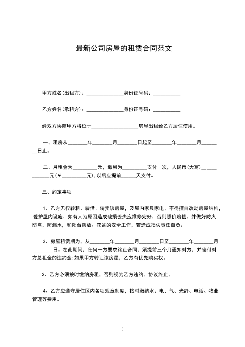 1、本合同所出租房屋坐落在___市___区______号
