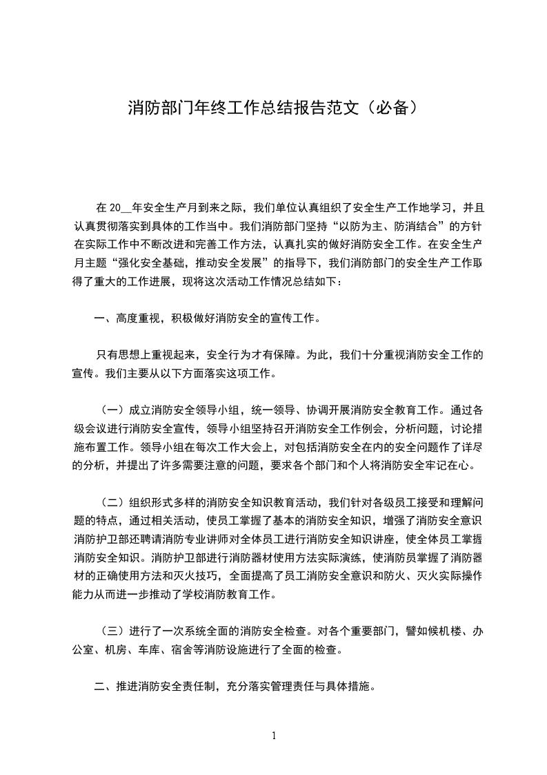 在20__年安全生产月到来之际,我们单位认真组织了安全生产工作地学习,并且认真贯彻落实到具体的工作当中。我们消防部门坚持“以防为主、防消结合”的方针,在实际工作中不断改进和完善工作方法,认真扎实的做好消防安全工作。在安全生产月主题“强化安全基础,推动安全发展”的指导下,我们消防部门的安全生产工作取得了重大的工作进展,现将这次活动工作情况总结如下: