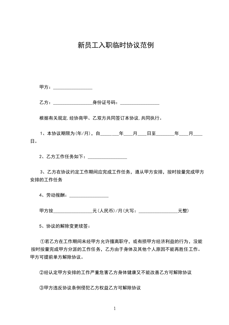 ①若乙方在工作期间未经甲方允许擅离职守,或有损甲方经济利益的行为,没能按时按量完成甲方分派的工作任务,乙方由于身体及其他个人原因不能再胜任工作。甲方可提前单方解除协议。