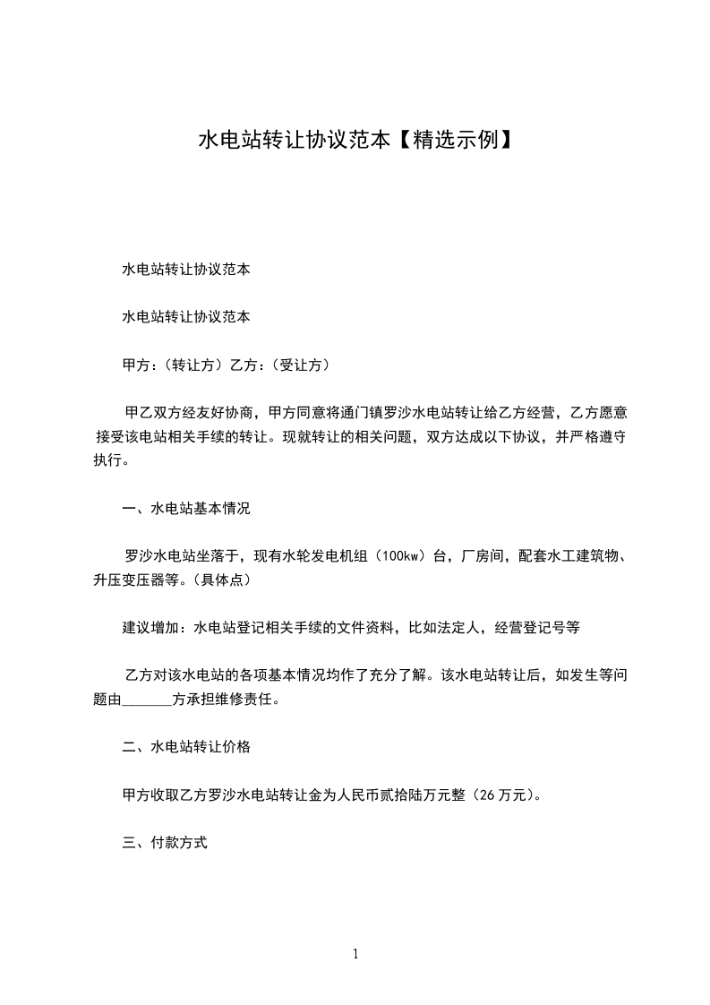 水电站机房转让合同范文