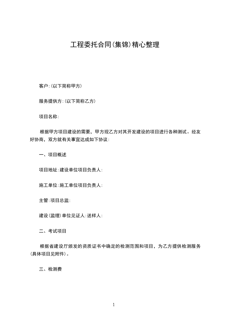 根据省建设厅颁发的资质证书中确定的检测范围和项目,为乙方提供检测服务(具体项目见附件)。