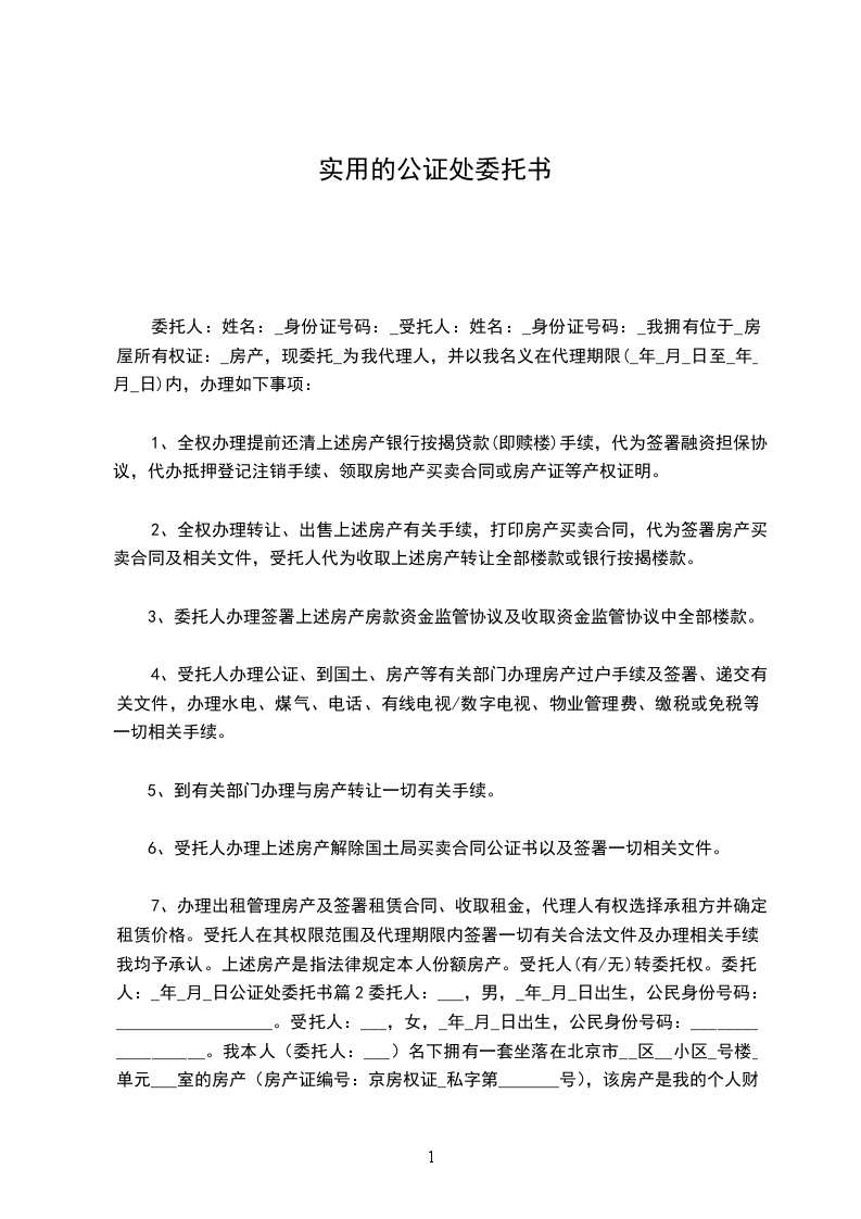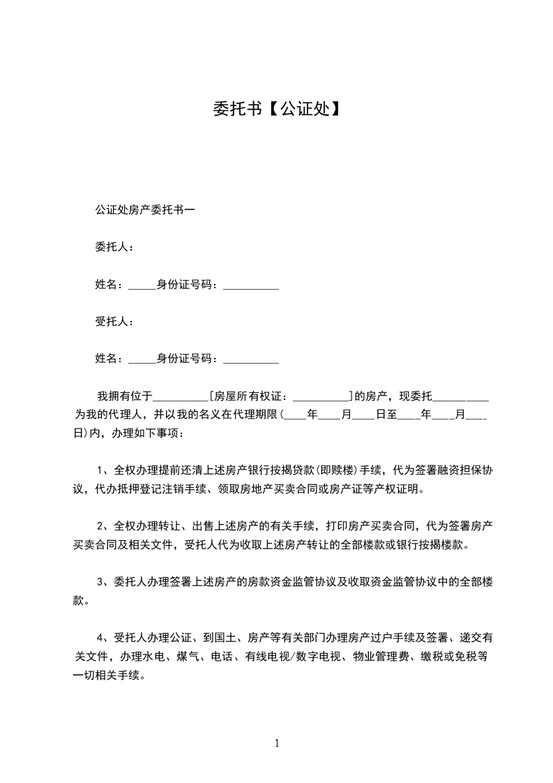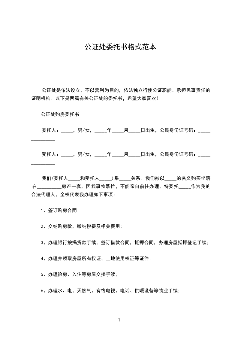 公证处购房委托书