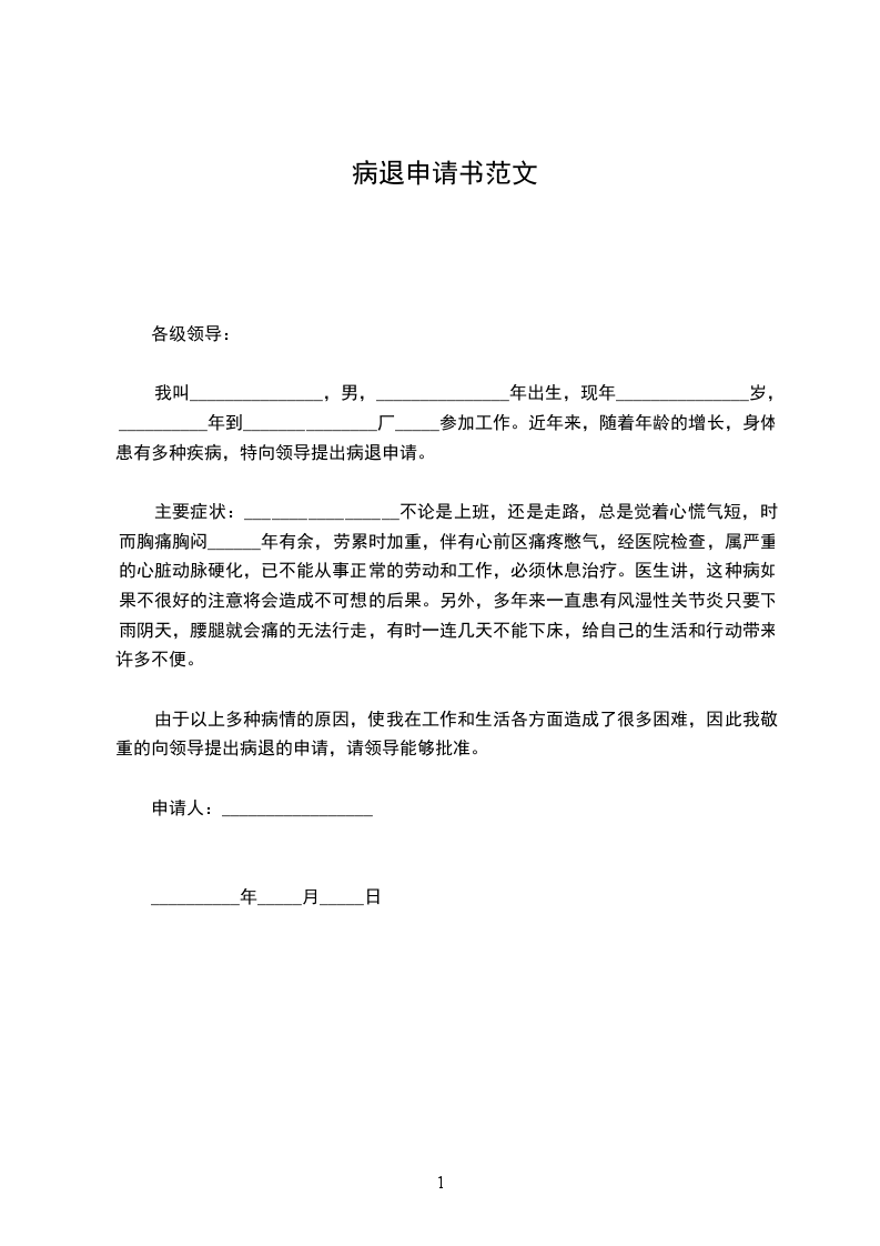 本人特向上级领导提出申请退休,请给予批准为盼!