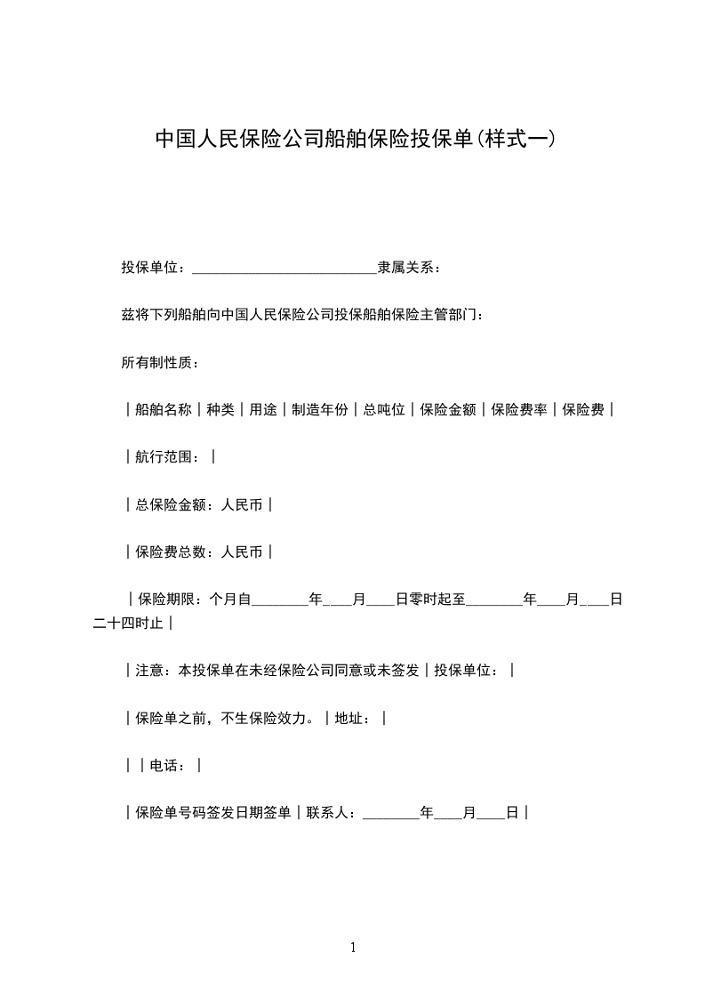 兹将下列船舶向中国人民保险公司投保船舶保险主管部门: