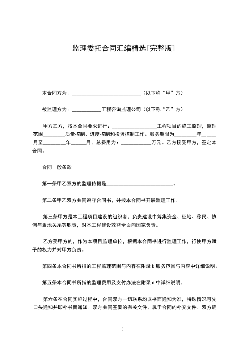 甲方乙方,按本合同要求进行:__________________工程项目的施工监理,监理范围_________质量控制、进度控制和投资控制工作。服务期限为_________年______月至_________年______月。总费用为:____________万元。乙方接受甲方,签定本合同。
