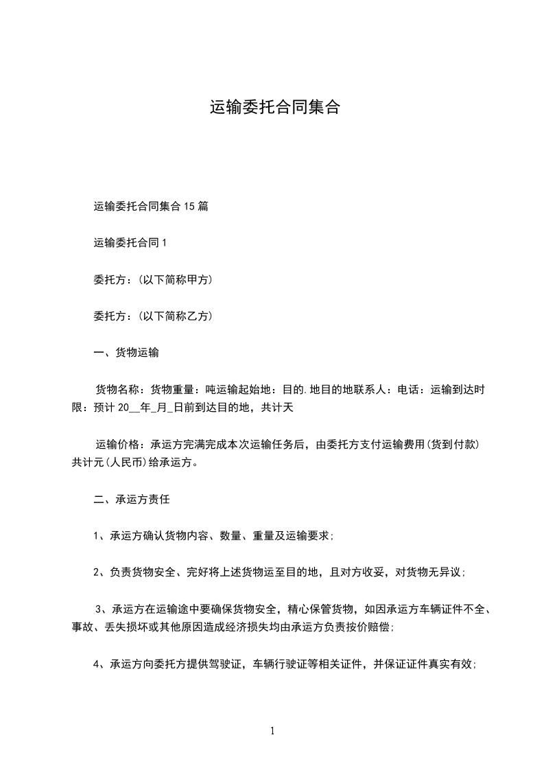 运输委托合同集合15篇