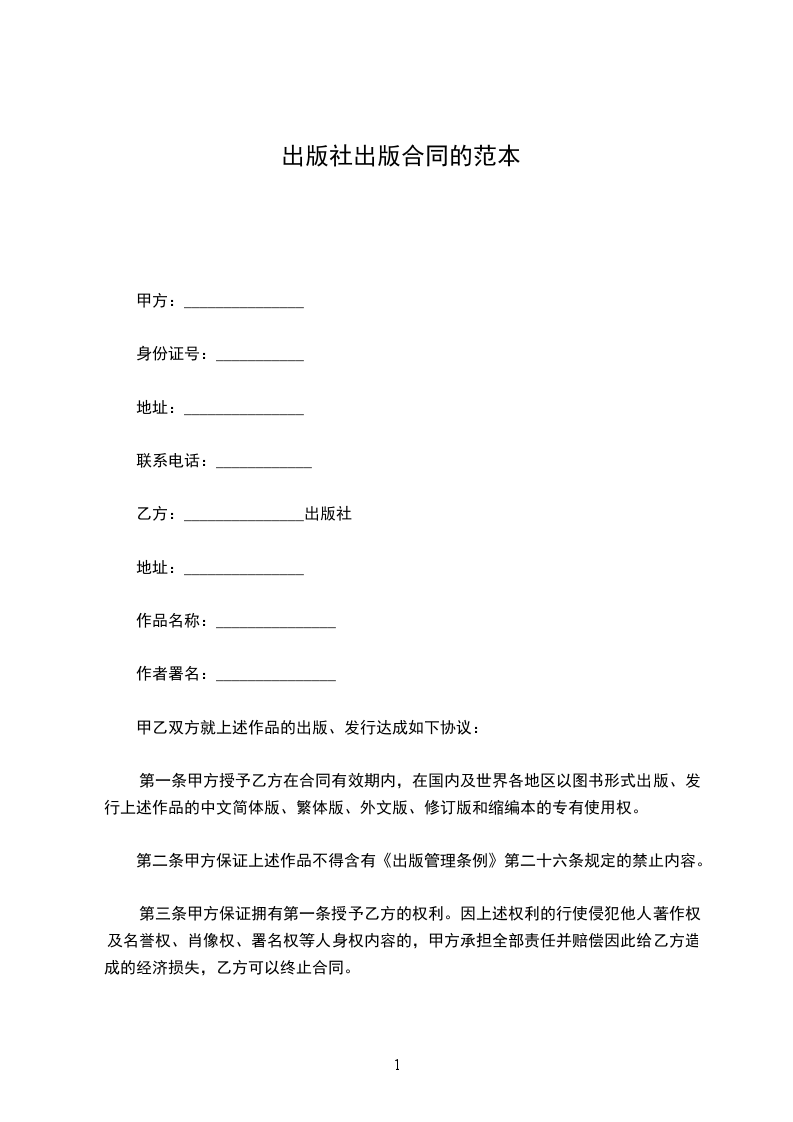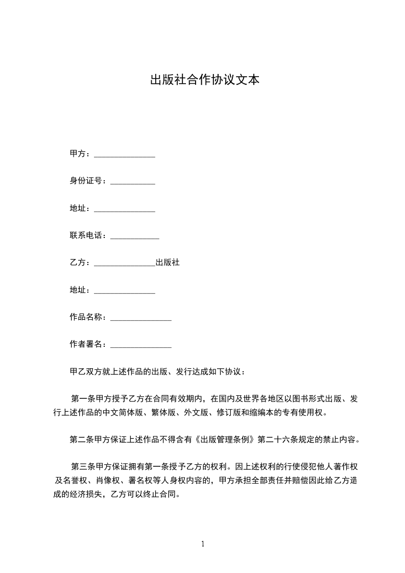 第二条甲方保证上述作品不得含有《出版管理条例》第二十六条规定的禁止内容。