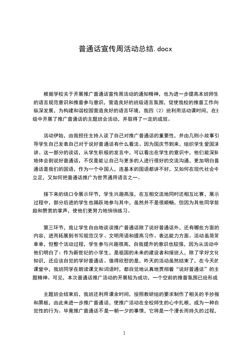 活动伊始,由我担任主持人谈了自己对推广普通话的重要性,并由几则小故事引导学生自己发表自己对于说好普通话有什么看法。因为国庆节到来,组织学生爱国演讲。这一部分的谈话,从学生积极的发言中,可以看出在学生的意识中,他们能深刻地体会到说好普通话,不仅是能让自己与更多的人进行很好的交流沟通,更加明白普通话是我们的国语,作为一个中国人,连基本的国语都讲不好,又如何在现代社会中立足,又如何把普通话推广为世界通用语言之一。