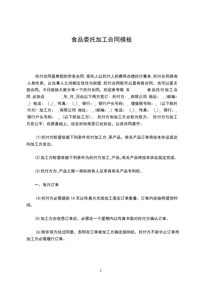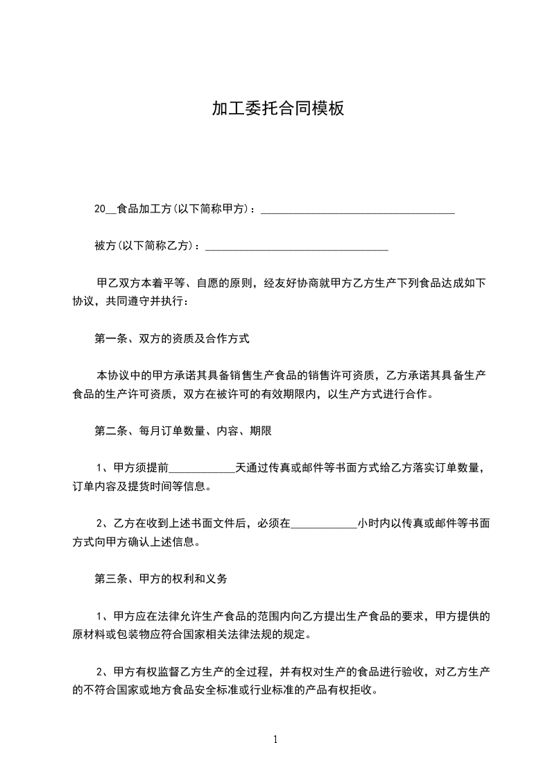 甲乙双方本着平等、自愿的原则,经友好协商就甲方乙方生产下列食品达成如下协议,共同遵守并执行: