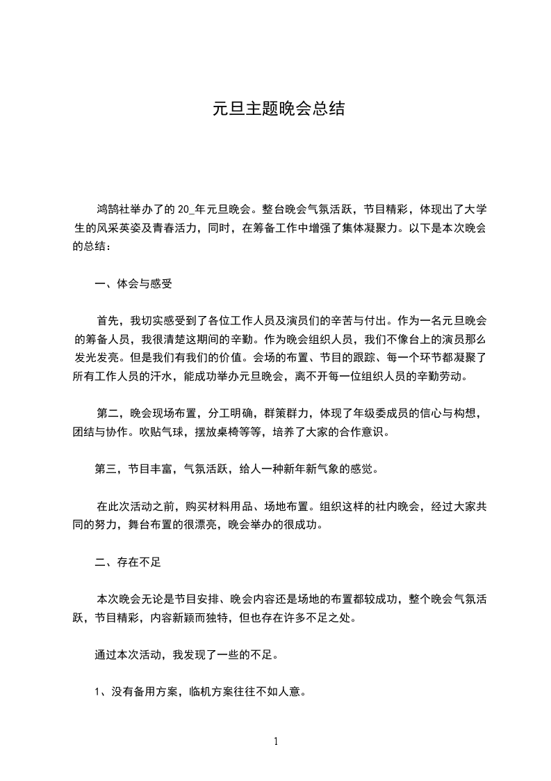 从总体上看,此次晚会是圆满的,我们也给大家一个满意的答复。但在晚会的筹划过程中,我们也出现了一些不足之处:如联系不够紧密、办事效率还不够、时间紧迫、人员不易集中等等。